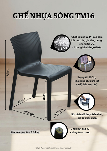 - Được sản xuất bằng nhựa nguyên sinh cao cấp, ghế có khả năng chịu lực cực tốt – 4 người lớn đứng cùng lúc vẫn không cong vênh, không biến dạng.